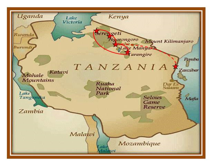 SERENGETI Situé à 330 Km d’Arusha, c’est l’un des parcs les plus réputés de toute l’Afrique de l’Est, avec ses superbes paysages de plaines ponctués de collines pierreuses, ses lodges souvent au sommet du luxe, et bien sûr, la grande migration des gnous, l’un des spectacle les plus fabuleux du Monde … A lui seul, le Serengeti concentre toute la magie des safaris. Il s’étend sur une superficie  d’environ 14 800 km². Son altitude varie entre 920 et 1 850 mètres.